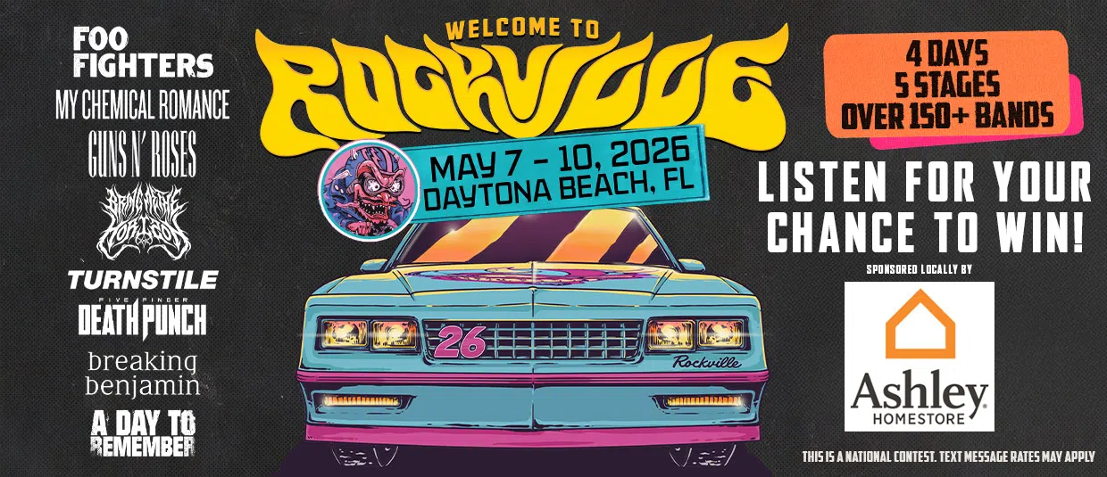 It's 4 days of Rock at Daytona International Speedway, and you could be there! Listen for your chance to win a trip to Welcome to Rockville!